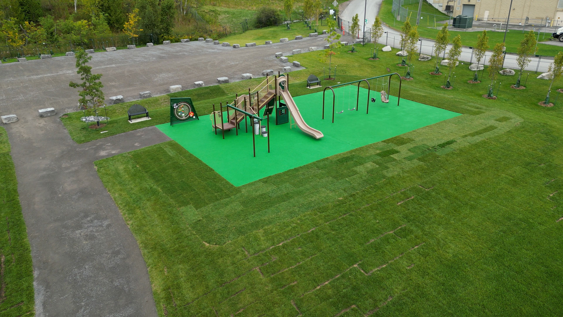 West Parcel contains west parking lot, a playground and west beach areas. A culvert conveys Alexander Creek flow under the railway lines into the continuation of the creek located west of the parking lot area