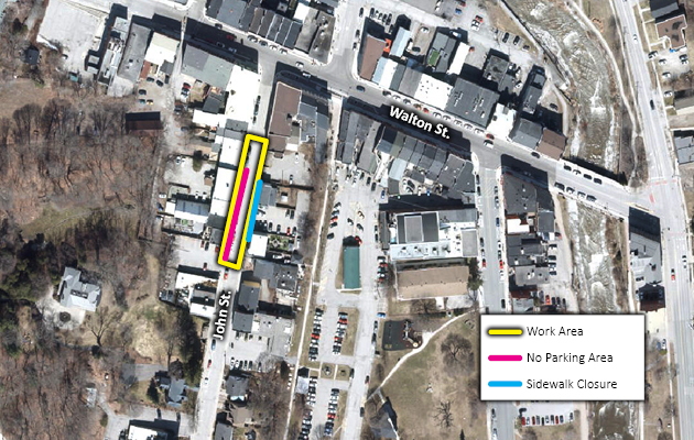 A section of the sidewalk on the east side of John Street will also be closed and parking unavailable in the immediate area.